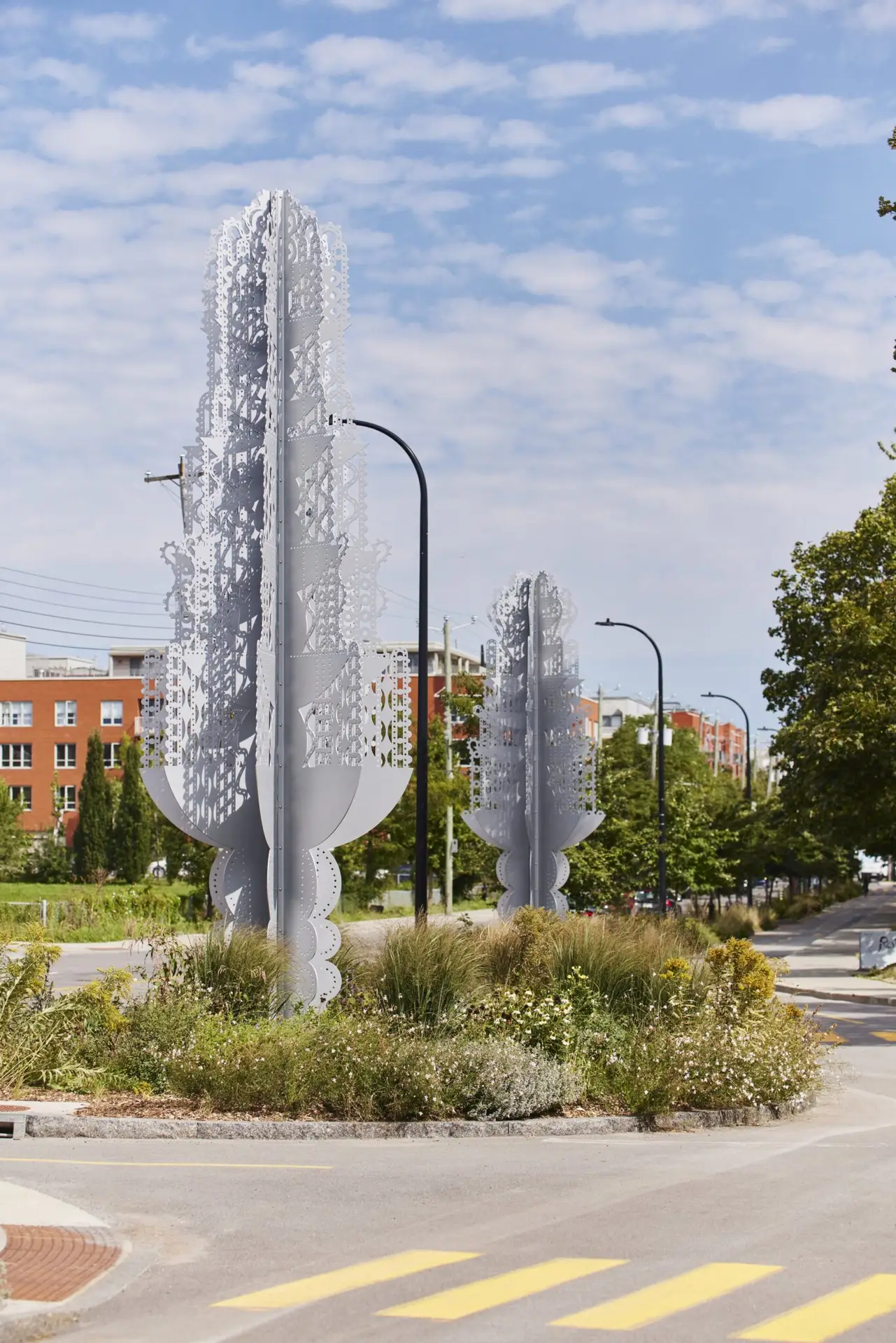 Aluminium coupé au laser, 324" x 98" (central sculpture) Collaborators / manufacturers: Atelier du Bronze, Infravert, Electro-Fusion